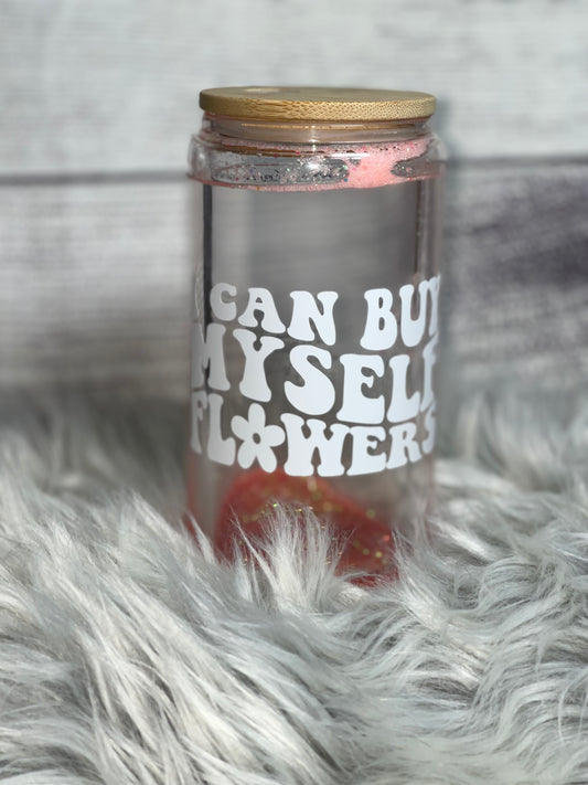 Tumbler - 16oz Libbey Style Double-Walled Glass Beer Can "I Can Buy Myself Flowers"