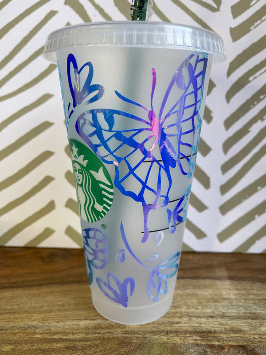 Tumbler - 24oz Venti Branded Cold Cup with Iridescent Butterfly
