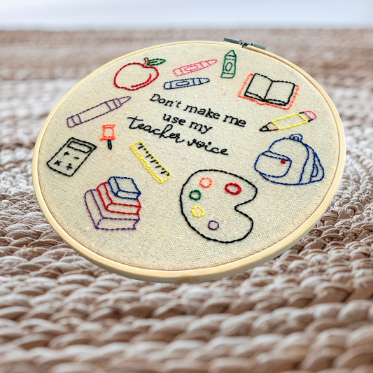 Teacher School Don't Make Me Use My Teacher Voice - Finished Piece, Custom Size Hoop