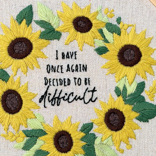Sunflower Embroidery Hoop Art – Sarcastic Quote Decor Custom Hoop size